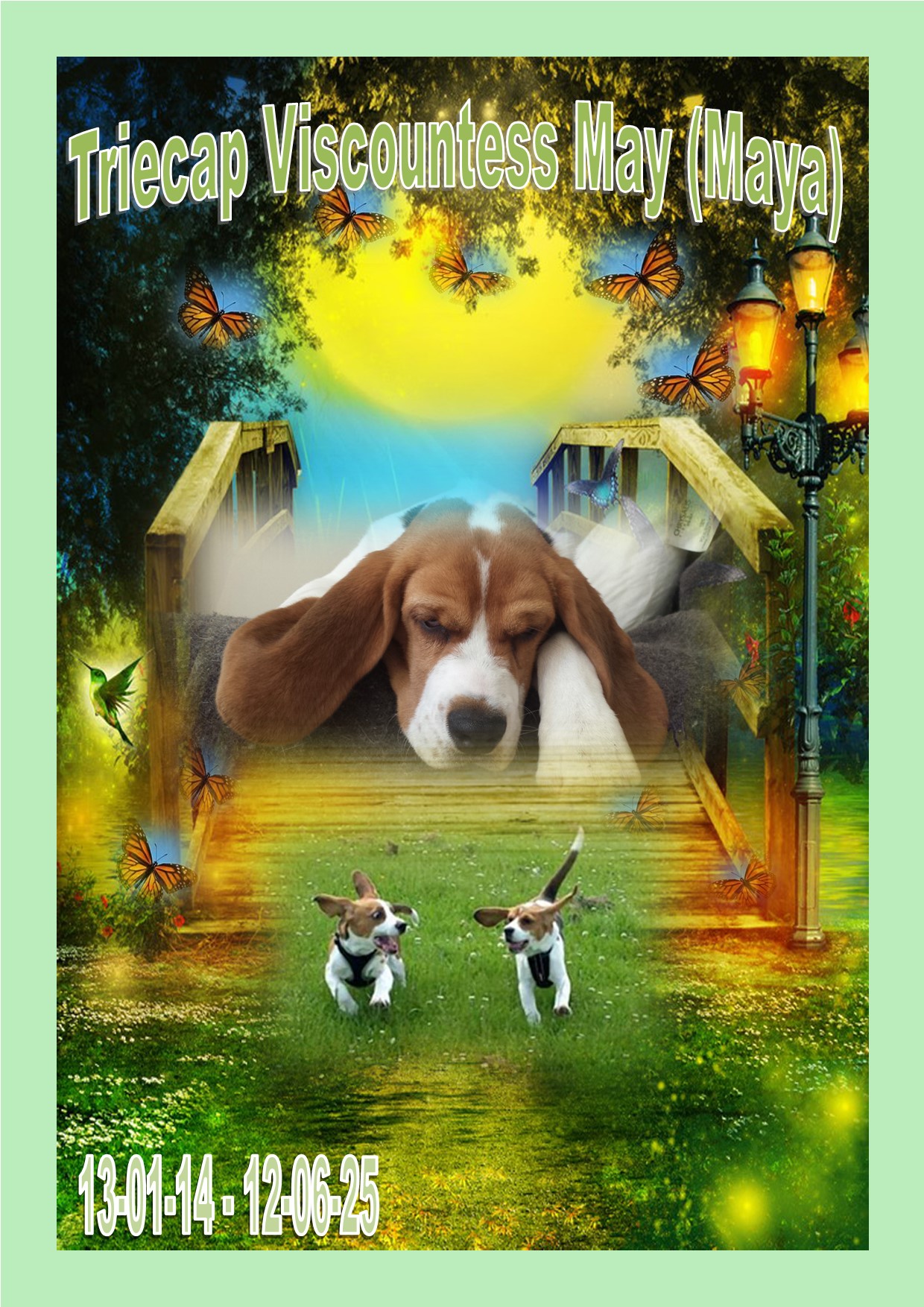 It is with great sadness that one of my beagle called Triecap Viscountess May (Maya to all her friends) pass away last month on 12th June 2025. Rest In Peace little one you have grown your wings and will met my beloved Michael and play with all the Triecaps in the rainbow bridge land ..